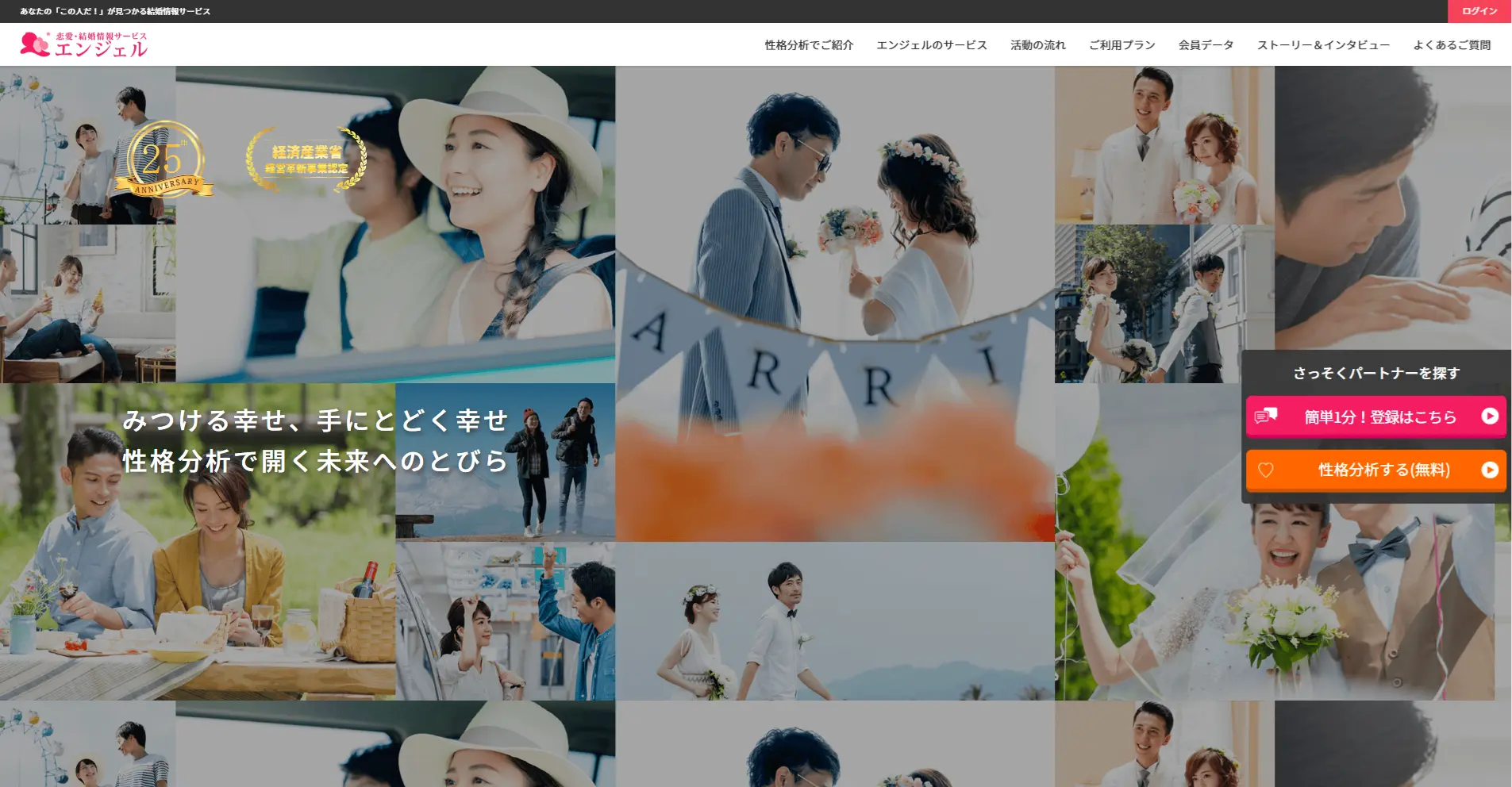 エンジェルは、性格分析をもとに相性の良い相手を探せる、オンライン型の婚活サービスです。