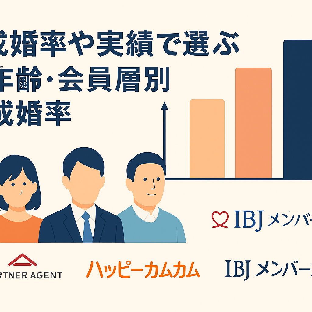 結婚相談所を選ぶうえで、多くの方が気になるのが「成婚率」や「実績」ですよね。実際にどの年代の会員がどれくらいの確率で成婚しているのかを知ることで、自分に合った相談所を見極めやすくなります。このページでは、成婚率に定評のあるパートナーエージェント、ハッピーカムカム、IBJメンバーズの年齢・会員層別の成婚データをもとに、特徴や傾向をわかりやすく解説。20代・30代・40代など年代ごとの違いを比較しながら、あなたに最適な結婚相談所選びの参考になる情報をお届けします。